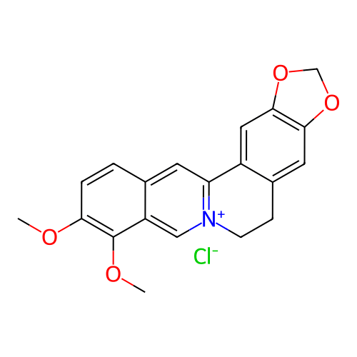 COc1ccc2cc3[n+](cc2c1OC)CCc1cc2c(cc1-3)OCO2.[Cl-] |