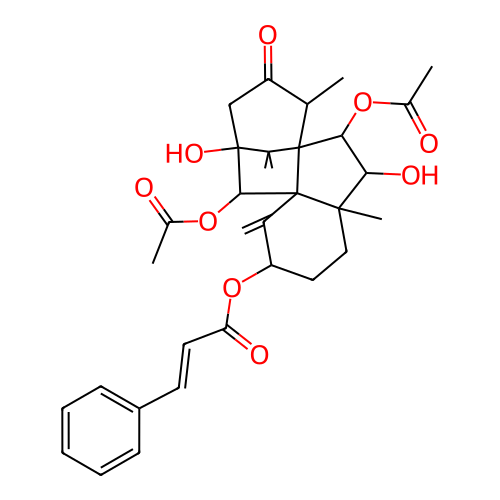 InChI=1S/C33H40O9/c1-18-23(36)17-31(39)28(41-21(4)35)33-19(2)24(42-25(37)14-13-22-11-9-8-10-12-22)15-16-30(33,7)26(38)27(40-20(3)34)32(18,33)29(31,5)6/h8-14,18,24,26-28,38-39H,2,15-17H2,1,3-7H3/b14-13+/t18-,24+,26+,27+,28-,30+,31-,32-,33-/m1/s1 |