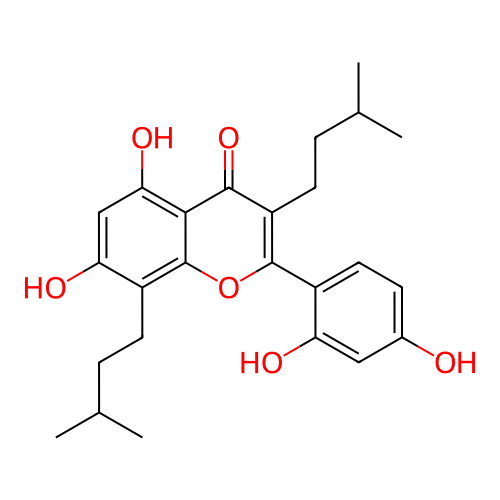 InChI=1S/C25H30O6/c1-13(2)5-8-17-20(28)12-21(29)22-23(30)18(9-6-14(3)4)24(31-25(17)22)16-10-7-15(26)11-19(16)27/h7,10-14,26-29H,5-6,8-9H2,1-4H3 |