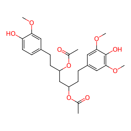 InChI=1S/C26H34O9/c1-16(27)34-20(9-6-18-8-11-22(29)23(12-18)31-3)15-21(35-17(2)28)10-7-19-13-24(32-4)26(30)25(14-19)33-5/h8,11-14,20-21,29-30H,6-7,9-10,15H2,1-5H3/t20-,21+/m0/s1 |