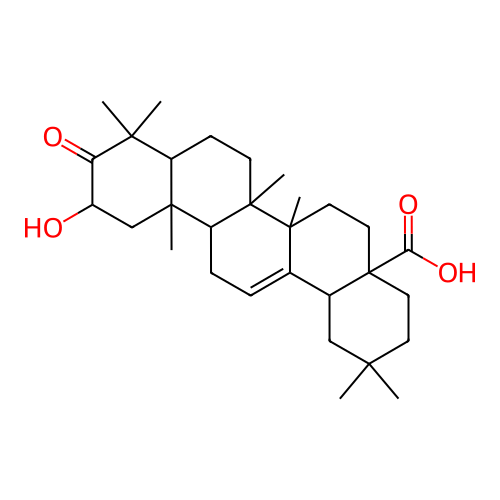 InChI=1S/C30H46O4/c1-25(2)12-14-30(24(33)34)15-13-28(6)18(19(30)16-25)8-9-22-27(5)17-20(31)23(32)26(3,4)21(27)10-11-29(22,28)7/h8,19-22,31H,9-17H2,1-7H3,(H,33,34)/t19-,20+,21-,22+,27-,28+,29+,30-/m0/s1 |