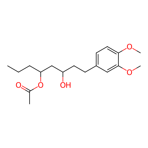 InChI=1S/C18H28O5/c1-5-6-16(23-13(2)19)12-15(20)9-7-14-8-10-17(21-3)18(11-14)22-4/h8,10-11,15-16,20H,5-7,9,12H2,1-4H3 |