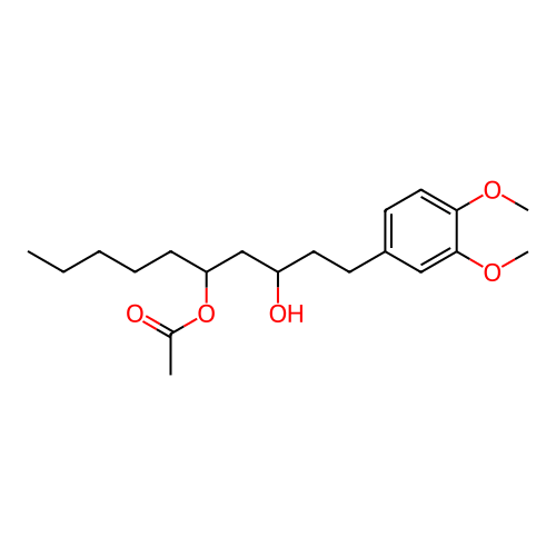 CCCCCC(CC(O)CCc1ccc(OC)c(OC)c1)OC(C)=O |
