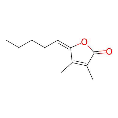 InChI=1S/C11H16O2/c1-4-5-6-7-10-8(2)9(3)11(12)13-10/h7H,4-6H2,1-3H3/b10-7-;InChI=1S/C11H16O2/c1-4-5-6-7-10-8(2)9(3)11(12)13-10/h7H,4-6H2,1-3H3/b10-7+ |