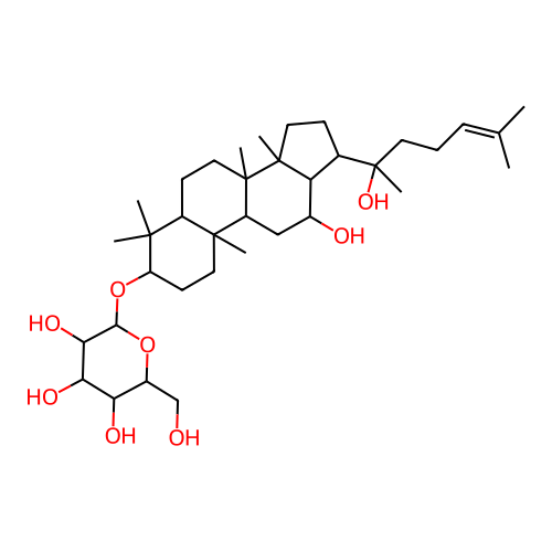InChI=1S/C36H62O8/c1-20(2)10-9-14-36(8,42)21-11-16-35(7)27(21)22(38)18-25-33(5)15-13-26(32(3,4)24(33)12-17-34(25,35)6)44-31-30(41)29(40)28(39)23(19-37)43-31/h10,21-31,37-42H,9,11-19H2,1-8H3/t21-,22+,23+,24-,25+,26-,27-,28+,29-,30+,31-,33-,34+,35+,36-/m0/s1 |