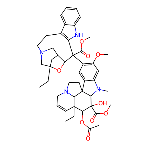 InChI=1S/C46H56N4O9/c1-8-42-23-27-24-49(25-42)19-15-29-28-13-10-11-14-32(28)47-35(29)45(36(27)59-42,40(52)56-6)31-21-30-33(22-34(31)55-5)48(4)38-44(30)17-20-50-18-12-16-43(9-2,37(44)50)39(58-26(3)51)46(38,54)41(53)57-7/h10-14,16,21-22,27,36-39,47,54H,8-9,15,17-20,23-25H2,1-7H3 |