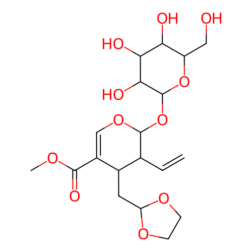 InChI=1S/C19H28O11/c1-3-9-10(6-13-26-4-5-27-13)11(17(24)25-2)8-28-18(9)30-19-16(23)15(22)14(21)12(7-20)29-19/h3,8-10,12-16,18-23H,1,4-7H2,2H3/t9-,10+,12-,14-,15+,16-,18+,19+/m1/s1 |