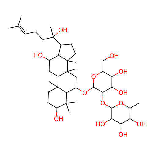 InChI=1S/C42H72O13/c1-20(2)11-10-14-42(9,51)22-12-16-40(7)28(22)23(44)17-26-39(6)15-13-27(45)38(4,5)35(39)24(18-41(26,40)8)53-37-34(32(49)30(47)25(19-43)54-37)55-36-33(50)31(48)29(46)21(3)52-36/h11,21-37,43-51H,10,12-19H2,1-9H3/t21-,22-,23+,24-,25+,26+,27-,28-,29-,30+,31+,32-,33+,34+,35-,36-,37+,39+,40+,41+,42+/m0/s1 |