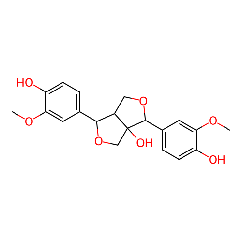 InChI=1S/C20H22O7/c1-24-16-7-11(3-5-14(16)21)18-13-9-26-19(20(13,23)10-27-18)12-4-6-15(22)17(8-12)25-2/h3-8,13,18-19,21-23H,9-10H2,1-2H3/t13-,18-,19+,20-/m1/s1 |