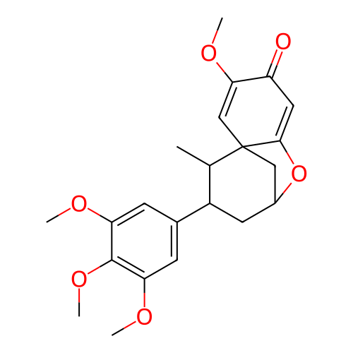 InChI=1S/C22H26O6/c1-12-15(13-6-17(24-2)21(27-5)18(7-13)25-3)8-14-10-22(12)11-19(26-4)16(23)9-20(22)28-14/h6-7,9,11-12,14-15H,8,10H2,1-5H3;InChI=1S/C22H26O6/c1-12-15(13-6-17(24-2)21(27-5)18(7-13)25-3)8-14-10-22(12)11-19(26-4)16(23)9-20(22)28-14/h6-7,9,11-12,14-15H,8,10H2,1-5H3/t12?,14?,15?,22-/m1/s1;InChI=1S/C22H26O6/c1-12-15(13-6-17(24-2)21(27-5)18(7-13)25-3)8-14-10-22(12)11-19(26-4)16(23)9-20(22)28-14/h6-7,9,11-12,14-15H,8,10H2,1-5H3/t12-,14+,15+,22-/m1/s1;InChI=1S/C22H26O6/c1-12-15(13-6-17(24-2)21(27-5)18(7-13)25-3)8-14-10-22(12)11-19(26-4)16(23)9-20(22)28-14/h6-7,9,11-12,14-15H,8,10H2,1-5H3/t12-,14+,15+,22+/m1/s1;InChI=1S/C22H26O6/c1-12-15(13-6-17(24-2)21(27-5)18(7-13)25-3)8-14-10-22(12)11-19(26-4)16(23)9-20(22)28-14/h6-7,9,11-12,14-15H,8,10H2,1-5H3/t12-,14-,15+,22-/m1/s1 |