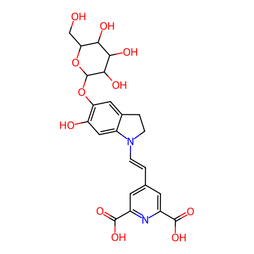 O=C(O)c1cc(C=CN2CCc3cc(OC4OC(CO)C(O)C(O)C4O)c(O)cc32)cc(C(=O)O)n1 |