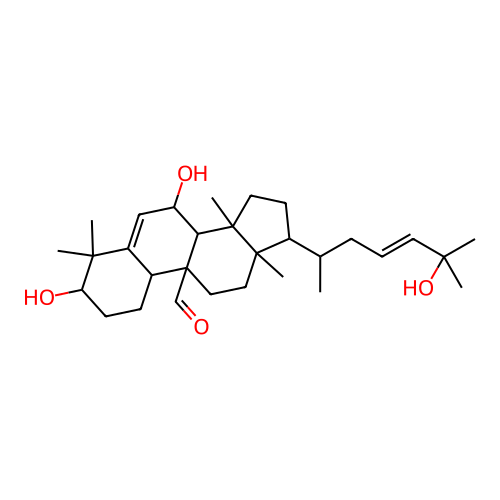 InChI=1S/C30H48O4/c1-19(9-8-13-26(2,3)34)20-12-14-29(7)25-23(32)17-22-21(10-11-24(33)27(22,4)5)30(25,18-31)16-15-28(20,29)6/h8,13,17-21,23-25,32-34H,9-12,14-16H2,1-7H3/b13-8+/t19-,20-,21-,23+,24+,25+,28-,29+,30-/m1/s1 |