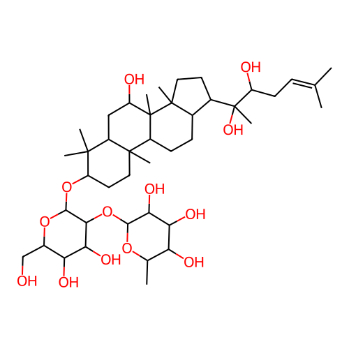 InChI=1S/C42H72O13/c1-20(2)10-13-27(44)42(9,51)23-14-17-40(7)22(23)11-12-25-39(6)16-15-29(38(4,5)26(39)18-28(45)41(25,40)8)54-37-35(33(49)31(47)24(19-43)53-37)55-36-34(50)32(48)30(46)21(3)52-36/h10,21-37,43-51H,11-19H2,1-9H3/t21-,22+,23-,24+,25+,26-,27?,28-,29-,30-,31+,32+,33-,34+,35+,36-,37-,39+,40+,41-,42-/m0/s1 |