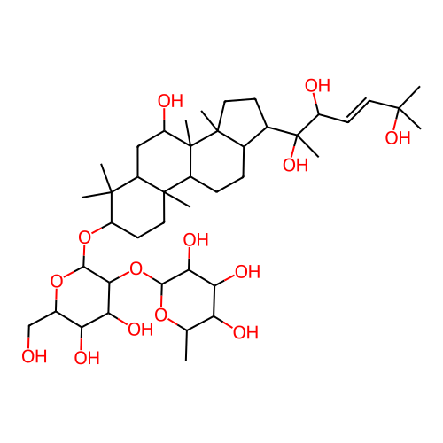 InChI=1S/C42H72O14/c1-20-29(46)31(48)33(50)35(53-20)56-34-32(49)30(47)23(19-43)54-36(34)55-28-14-16-39(6)24-11-10-21-22(42(9,52)26(44)13-15-37(2,3)51)12-17-40(21,7)41(24,8)27(45)18-25(39)38(28,4)5/h13,15,20-36,43-52H,10-12,14,16-19H2,1-9H3/b15-13+/t20-,21+,22-,23+,24+,25-,26?,27-,28-,29-,30+,31+,32-,33+,34+,35-,36-,39+,40+,41-,42-/m0/s1 |