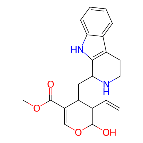 InChI=1S/C21H24N2O4/c1-3-12-15(16(20(24)26-2)11-27-21(12)25)10-18-19-14(8-9-22-18)13-6-4-5-7-17(13)23-19/h3-7,11-12,15,18,21-23,25H,1,8-10H2,2H3/t12-,15+,18+,21-/m1/s1 |