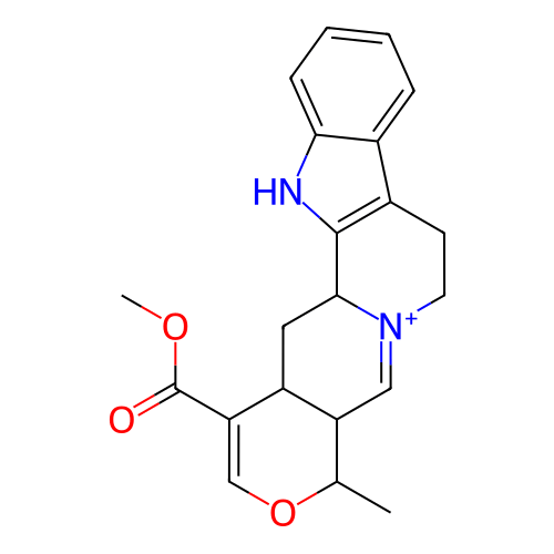 InChI=1S/C21H23N2O3/c1-12-16-10-23-8-7-14-13-5-3-4-6-18(13)22-20(14)19(23)9-15(16)17(11-26-12)21(24)25-2/h3-6,10-12,15-16,19,22H,7-9H2,1-2H3/q+1/t12-,15+,16-,19+/m1/s1 |