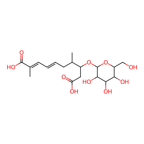 InChI=1S/C18H28O10/c1-9(5-3-4-6-10(2)17(25)26)11(7-13(20)21)27-18-16(24)15(23)14(22)12(8-19)28-18/h3-4,6,9,11-12,14-16,18-19,22-24H,5,7-8H2,1-2H3,(H,20,21)(H,25,26)/b4-3+,10-6+/t9?,11?,12-,14-,15+,16-,18-/m1/s1 |