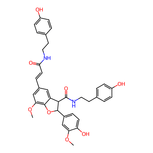 COc1cc(C2Oc3c(OC)cc(C=CC(=O)NCCc4ccc(O)cc4)cc3C2C(=O)NCCc2ccc(O)cc2)ccc1O |