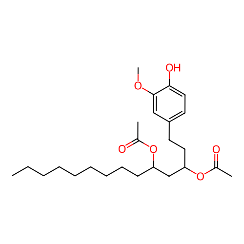 CCCCCCCCCC(CC(CCc1ccc(O)c(OC)c1)OC(C)=O)OC(C)=O |