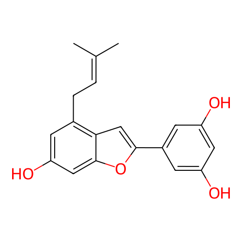 InChI=1S/C19H18O4/c1-11(2)3-4-12-5-16(22)9-19-17(12)10-18(23-19)13-6-14(20)8-15(21)7-13/h3,5-10,20-22H,4H2,1-2H3 |