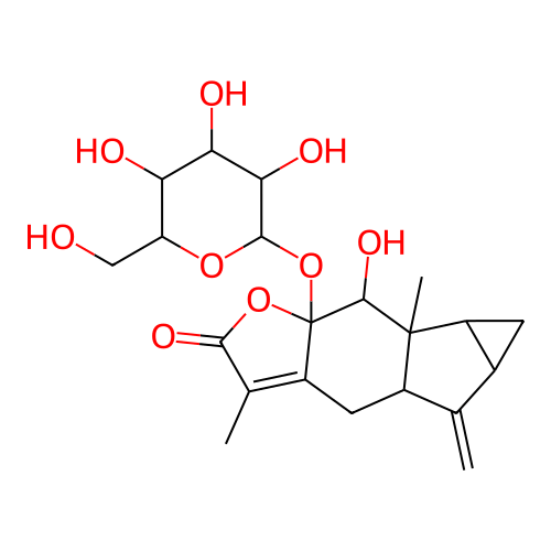 InChI=1S/C21H28O9/c1-7-9-4-12(9)20(3)10(7)5-11-8(2)17(26)29-21(11,19(20)27)30-18-16(25)15(24)14(23)13(6-22)28-18/h9-10,12-16,18-19,22-25,27H,1,4-6H2,2-3H3/t9-,10+,12-,13-,14-,15+,16-,18+,19+,20-,21+/m1/s1 |