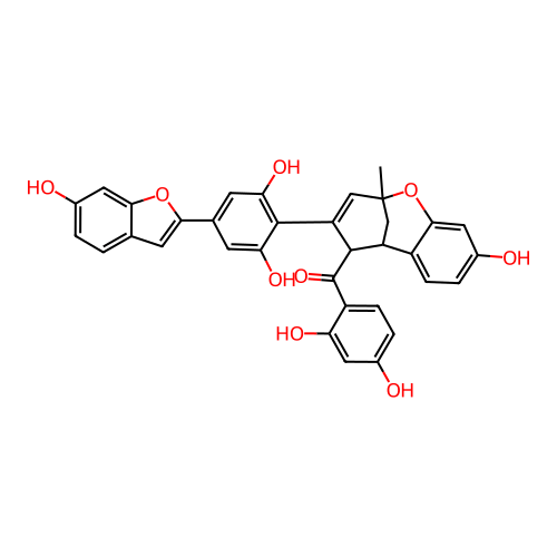 CC12C=C(c3c(O)cc(-c4cc5ccc(O)cc5o4)cc3O)C(C(=O)c3ccc(O)cc3O)C(C1)c1ccc(O)cc1O2 |