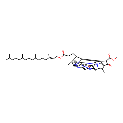 InChI=1S/C55H69N4O6.Mg/c1-12-38-35(8)42-27-43-36(9)40(23-24-48(61)65-26-25-34(7)22-16-21-33(6)20-15-19-32(5)18-14-17-31(3)4)52(58-43)50-51(55(63)64-11)54(62)49-37(10)44(59-53(49)50)28-46-39(13-2)41(30-60)47(57-46)29-45(38)56-42;/h12-13,25,27-33,36,40,51H,1-2,14-24,26H2,3-11H3,(H-,56,57,58,59,60,62);/q-1;+2/p-1 |