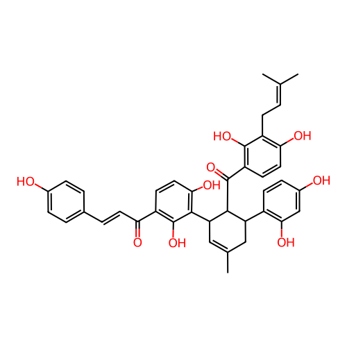 CC(C)=CCc1c(O)ccc(C(=O)C2C(c3c(O)ccc(C(=O)C=Cc4ccc(O)cc4)c3O)C=C(C)CC2c2ccc(O)cc2O)c1O |