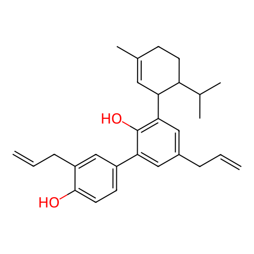 InChI=1S/C28H34O2/c1-6-8-20-15-24(21-11-13-27(29)22(17-21)9-7-2)28(30)26(16-20)25-14-19(5)10-12-23(25)18(3)4/h6-7,11,13-18,23,25,29-30H,1-2,8-10,12H2,3-5H3 |