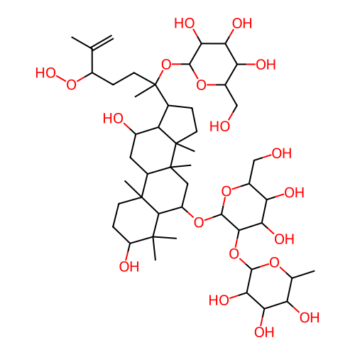 InChI=1S/C48H82O20/c1-20(2)24(68-61)11-15-48(9,67-42-38(60)35(57)32(54)26(18-49)64-42)22-10-14-46(7)30(22)23(51)16-28-45(6)13-12-29(52)44(4,5)40(45)25(17-47(28,46)8)63-43-39(36(58)33(55)27(19-50)65-43)66-41-37(59)34(56)31(53)21(3)62-41/h21-43,49-61H,1,10-19H2,2-9H3/t21-,22-,23+,24?,25-,26+,27+,28+,29-,30-,31-,32+,33+,34+,35-,36-,37+,38+,39+,40-,41-,42-,43+,45+,46+,47+,48-/m0/s1 |