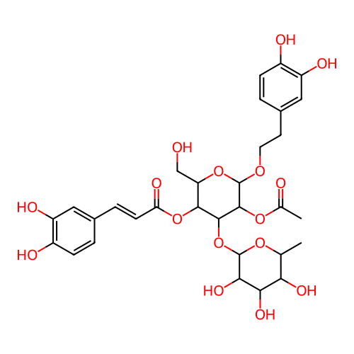 InChI=1S/C31H38O16/c1-14-24(39)25(40)26(41)30(43-14)47-28-27(46-23(38)8-5-16-3-6-18(34)20(36)11-16)22(13-32)45-31(29(28)44-15(2)33)42-10-9-17-4-7-19(35)21(37)12-17/h3-8,11-12,14,22,24-32,34-37,39-41H,9-10,13H2,1-2H3/b8-5+/t14-,22+,24-,25+,26+,27+,28-,29+,30-,31+/m0/s1 |