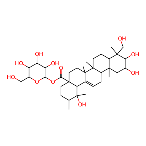 InChI=1S/C36H58O11/c1-18-9-12-36(30(44)47-29-26(42)25(41)24(40)21(16-37)46-29)14-13-33(4)19(27(36)35(18,6)45)7-8-23-31(2)15-20(39)28(43)32(3,17-38)22(31)10-11-34(23,33)5/h7,18,20-29,37-43,45H,8-17H2,1-6H3/t18-,20-,21-,22-,23-,24-,25+,26-,27-,28-,29+,31+,32+,33-,34-,35-,36+/m1/s1 |
