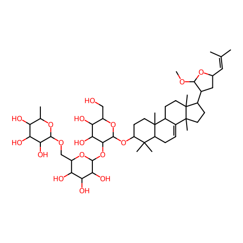 InChI=1S/C49H80O17/c1-22(2)18-24-19-25(42(59-9)62-24)26-12-16-49(8)28-10-11-31-46(4,5)32(14-15-47(31,6)27(28)13-17-48(26,49)7)65-45-41(38(56)34(52)29(20-50)63-45)66-44-40(58)37(55)35(53)30(64-44)21-60-43-39(57)36(54)33(51)23(3)61-43/h10,18,23-27,29-45,50-58H,11-17,19-21H2,1-9H3/t23-,24+,25-,26-,27-,29+,30+,31-,32-,33-,34+,35+,36+,37-,38-,39+,40+,41+,42+,43+,44-,45-,47+,48-,49+/m0/s1 |