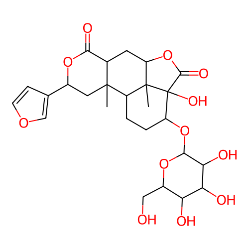 InChI=1S/C26H34O12/c1-24-8-13(11-5-6-34-10-11)35-21(31)12(24)7-17-25(2)15(24)3-4-16(26(25,33)23(32)38-17)37-22-20(30)19(29)18(28)14(9-27)36-22/h5-6,10,12-20,22,27-30,33H,3-4,7-9H2,1-2H3/t12-,13-,14+,15-,16-,17-,18+,19-,20+,22-,24+,25-,26-/m0/s1 |