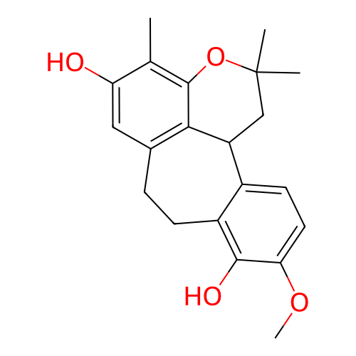 InChI=1S/C21H24O4/c1-11-16(22)9-12-5-6-14-13(7-8-17(24-4)19(14)23)15-10-21(2,3)25-20(11)18(12)15/h7-9,15,22-23H,5-6,10H2,1-4H3/t15-/m1/s1 |