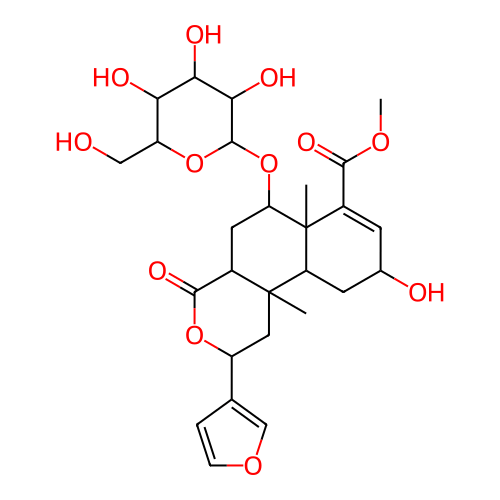 InChI=1S/C27H36O12/c1-26-9-16(12-4-5-36-11-12)37-24(34)14(26)8-19(39-25-22(32)21(31)20(30)17(10-28)38-25)27(2)15(23(33)35-3)6-13(29)7-18(26)27/h4-6,11,13-14,16-22,25,28-32H,7-10H2,1-3H3;InChI=1S/C27H36O12/c1-26-9-16(12-4-5-36-11-12)37-24(34)14(26)8-19(39-25-22(32)21(31)20(30)17(10-28)38-25)27(2)15(23(33)35-3)6-13(29)7-18(26)27/h4-6,11,13-14,16-22,25,28-32H,7-10H2,1-3H3/t13-,14+,16-,17+,18-,19-,20+,21-,22+,25-,26+,27-/m0/s1;InChI=1S/C27H36O12/c1-26-9-16(12-4-5-36-11-12)37-24(34)14(26)8-19(39-25-22(32)21(31)20(30)17(10-28)38-25)27(2)15(23(33)35-3)6-13(29)7-18(26)27/h4-6,11,13-14,16-22,25,28-32H,7-10H2,1-3H3/t13-,14+,16-,17+,18-,19-,20+,21-,22+,25-,26+,27-/m1/s1;InChI=1S/C27H36O12/c1-26-9-16(12-4-5-36-11-12)37-24(34)14(26)8-19(39-25-22(32)21(31)20(30)17(10-28)38-25)27(2)15(23(33)35-3)6-13(29)7-18(26)27/h4-6,11,13-14,16-22,25,28-32H,7-10H2,1-3H3/t13-,14+,16-,17+,18-,19+,20+,21-,22+,25-,26+,27-/m0/s1 |