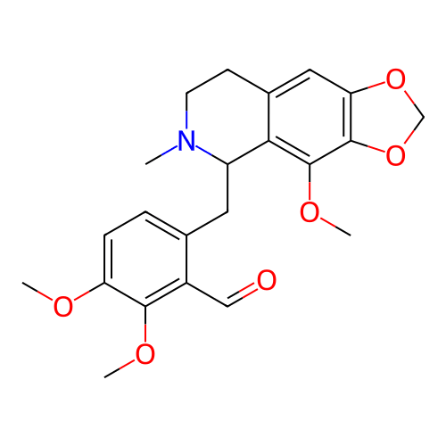 InChI=1S/C22H25NO6/c1-23-8-7-14-10-18-21(29-12-28-18)22(27-4)19(14)16(23)9-13-5-6-17(25-2)20(26-3)15(13)11-24/h5-6,10-11,16H,7-9,12H2,1-4H3/t16-/m0/s1 |