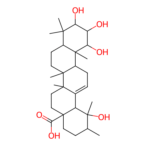 InChI=1S/C30H48O6/c1-16-10-13-30(24(34)35)15-14-26(4)17(21(30)29(16,7)36)8-9-19-27(26,5)12-11-18-25(2,3)22(32)20(31)23(33)28(18,19)6/h8,16,18-23,31-33,36H,9-15H2,1-7H3,(H,34,35)/t16-,18+,19+,20-,21-,22+,23-,26-,27-,28+,29-,30+/m1/s1 |