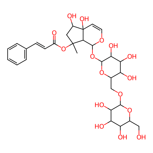 InChI=1S/C30H40O16/c1-29(46-18(33)8-7-14-5-3-2-4-6-14)11-17(32)30(40)9-10-41-28(25(29)30)45-27-24(39)22(37)20(35)16(44-27)13-42-26-23(38)21(36)19(34)15(12-31)43-26/h2-10,15-17,19-28,31-32,34-40H,11-13H2,1H3/b8-7+/t15-,16-,17-,19-,20-,21+,22+,23-,24-,25-,26-,27+,28+,29+,30-/m1/s1 |