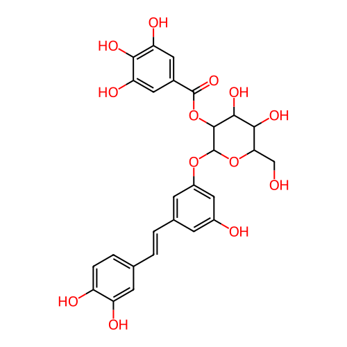 O=C(OC1C(Oc2cc(O)cc(C=Cc3ccc(O)c(O)c3)c2)OC(CO)C(O)C1O)c1cc(O)c(O)c(O)c1 |