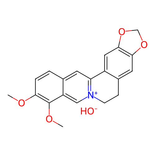 COc1ccc2cc3[n+](cc2c1OC)CCc1cc2c(cc1-3)OCO2.[OH-] |