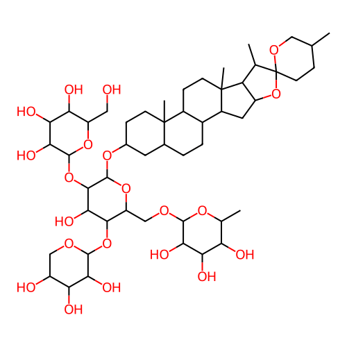 InChI=1S/C50H82O21/c1-20-8-13-50(64-17-20)21(2)32-29(71-50)15-27-25-7-6-23-14-24(9-11-48(23,4)26(25)10-12-49(27,32)5)66-47-43(70-46-40(60)37(57)35(55)30(16-51)67-46)41(61)42(69-45-38(58)34(54)28(52)18-62-45)31(68-47)19-63-44-39(59)36(56)33(53)22(3)65-44/h20-47,51-61H,6-19H2,1-5H3/t20-,21-,22-,23+,24-,25+,26-,27-,28+,29-,30+,31+,32-,33-,34-,35+,36+,37-,38+,39+,40+,41-,42+,43+,44+,45-,46-,47+,48-,49-,50+/m0/s1 |