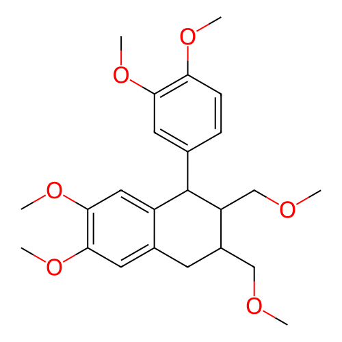 InChI=1S/C24H32O6/c1-25-13-17-9-16-11-22(29-5)23(30-6)12-18(16)24(19(17)14-26-2)15-7-8-20(27-3)21(10-15)28-4/h7-8,10-12,17,19,24H,9,13-14H2,1-6H3/t17-,19-,24-/m1/s1 |