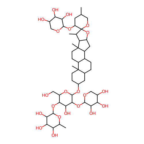 InChI=1S/C49H80O21/c1-19-12-31(67-43-37(57)34(54)27(51)17-61-43)49(63-16-19)20(2)32-29(70-49)14-26-24-7-6-22-13-23(8-10-47(22,4)25(24)9-11-48(26,32)5)65-46-42(69-44-38(58)35(55)28(52)18-62-44)40(60)41(30(15-50)66-46)68-45-39(59)36(56)33(53)21(3)64-45/h19-46,50-60H,6-18H2,1-5H3/t19-,20-,21-,22+,23-,24+,25-,26-,27+,28+,29-,30+,31-,32-,33-,34-,35-,36+,37+,38+,39+,40-,41+,42+,43-,44-,45-,46+,47-,48-,49-/m0/s1 |