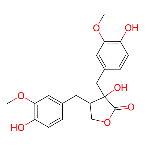 InChI=1S/C20H22O7/c1-25-17-8-12(3-5-15(17)21)7-14-11-27-19(23)20(14,24)10-13-4-6-16(22)18(9-13)26-2/h3-6,8-9,14,21-22,24H,7,10-11H2,1-2H3/t14-,20+/m0/s1 |