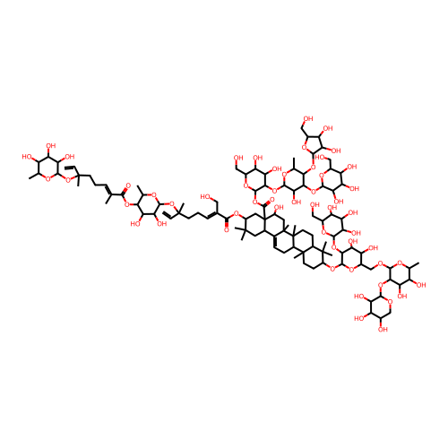 InChI=1S/C108H172O54/c1-17-103(12,161-95-79(135)68(124)60(116)42(4)143-95)27-19-21-41(3)88(138)154-82-44(6)146-96(80(136)74(82)130)162-104(13,18-2)28-20-22-46(34-109)89(139)152-59-33-108(100(140)160-99-87(72(128)65(121)52(37-112)150-99)159-94-81(137)84(156-92-77(133)69(125)63(119)50(35-110)147-92)83(45(7)145-94)155-91-76(132)66(122)53(38-113)149-91)48(31-101(59,8)9)47-23-24-56-105(14)29-26-58(102(10,11)55(105)25-30-106(56,15)107(47,16)32-57(108)115)153-98-86(158-93-78(134)70(126)64(120)51(36-111)148-93)73(129)67(123)54(151-98)40-142-97-85(71(127)61(117)43(5)144-97)157-90-75(131)62(118)49(114)39-141-90/h17-18,21-23,42-45,48-87,90-99,109-137H,1-2,19-20,24-40H2,3-16H3/b41-21+,46-22+/t42-,43-,44-,45+,48+,49-,50-,51-,52-,53+,54-,55+,56-,57-,58+,59+,60-,61+,62+,63-,64-,65-,66+,67-,68+,69+,70+,71+,72+,73+,74-,75-,76-,77-,78-,79-,80-,81-,82-,83+,84+,85-,86-,87-,90+,91+,92+,93+,94+,95+,96+,97-,98+,99+,103-,104-,105+,106-,107-,108-/m1/s1 |