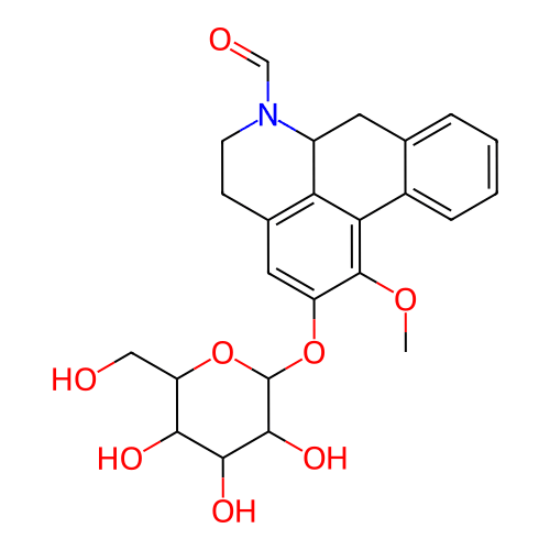 InChI=1S/C24H27NO8/c1-31-23-16(32-24-22(30)21(29)20(28)17(10-26)33-24)9-13-6-7-25(11-27)15-8-12-4-2-3-5-14(12)19(23)18(13)15/h2-5,9,11,15,17,20-22,24,26,28-30H,6-8,10H2,1H3/t15-,17-,20-,21+,22-,24-/m1/s1 |