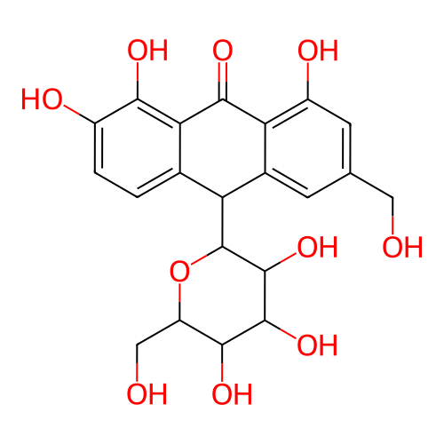 InChI=1S/C21H22O10/c22-5-7-3-9-13(21-20(30)19(29)17(27)12(6-23)31-21)8-1-2-10(24)16(26)15(8)18(28)14(9)11(25)4-7/h1-4,12-13,17,19-27,29-30H,5-6H2/t12-,13+,17-,19+,20-,21+/m1/s1 |