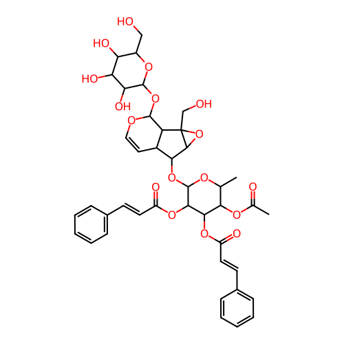 InChI=1S/C41H46O17/c1-21-33(52-22(2)44)35(54-27(45)15-13-23-9-5-3-6-10-23)36(55-28(46)16-14-24-11-7-4-8-12-24)40(51-21)56-34-25-17-18-50-38(29(25)41(20-43)37(34)58-41)57-39-32(49)31(48)30(47)26(19-42)53-39/h3-18,21,25-26,29-40,42-43,47-49H,19-20H2,1-2H3 |