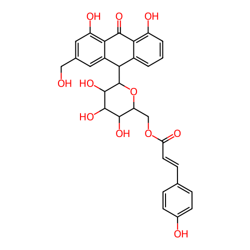 O=C(C=Cc1ccc(O)cc1)OCC1OC(C2c3cccc(O)c3C(=O)c3c(O)cc(CO)cc32)C(O)C(O)C1O |